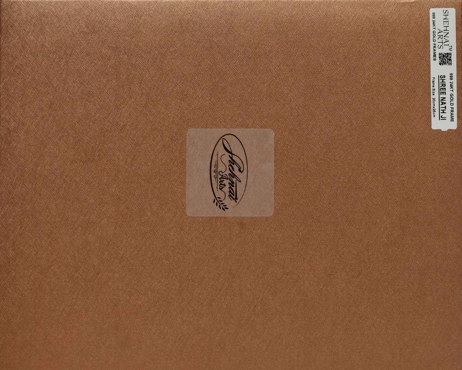 The back of this premium golden frame is designed with durability and elegance in mind. It features a sturdy brown textured finish that enhances both strength and aesthetics. The Shehnai Arts logo and product label add authenticity, ensuring you receive a genuine and high-quality product.